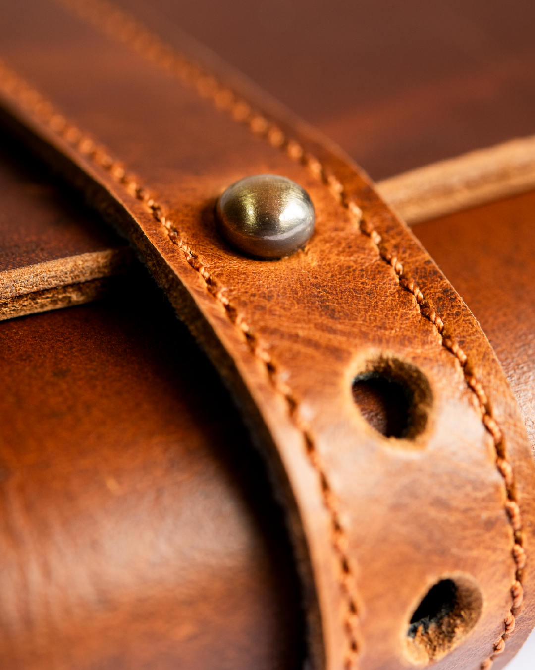Agenda en cuero colombiano con solapa cruzada, cierre frontal y correa removible para colgar estilo cartera.